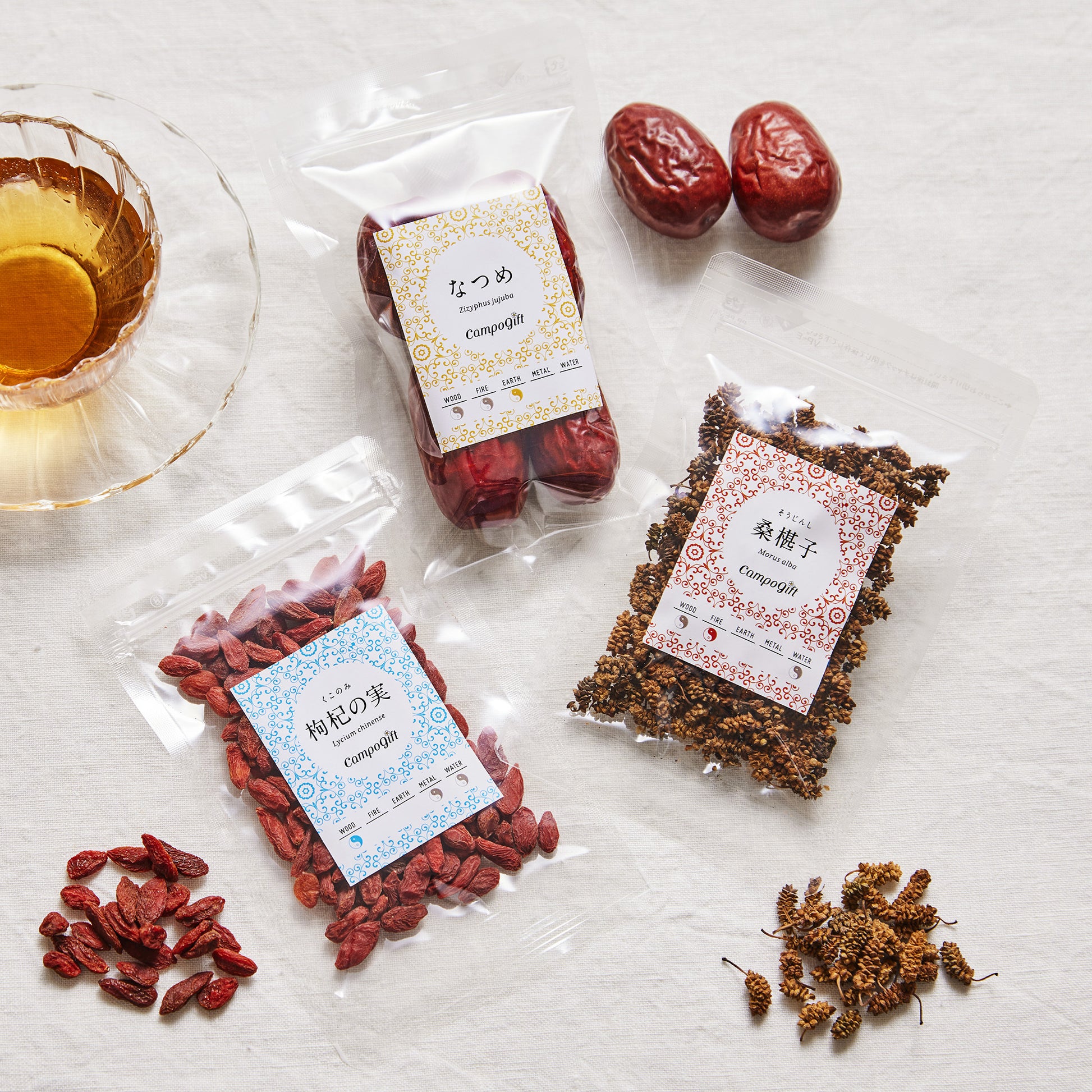 女性に不足しがちな「うるおい」と「つや」を補う3つの薬膳果実茶材を組み合わせた、お得なセット商品です。(単品購入より10%お安くなります。)